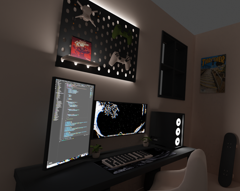 Je me suis aussi formé à la 3D principalement sur Blender dans un but uniquement personnel. Cependant lier le développement et la 3D avec Three js par exemple reste très intéressant. Voici quelques petits modèles 3D que j'ai fait
